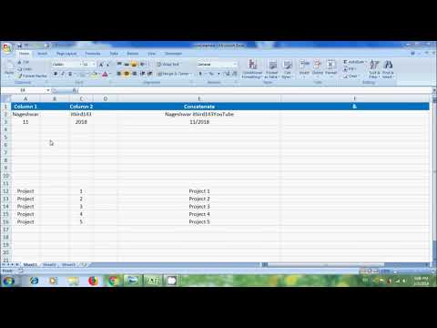 Excel 2007: how to use concatenate function